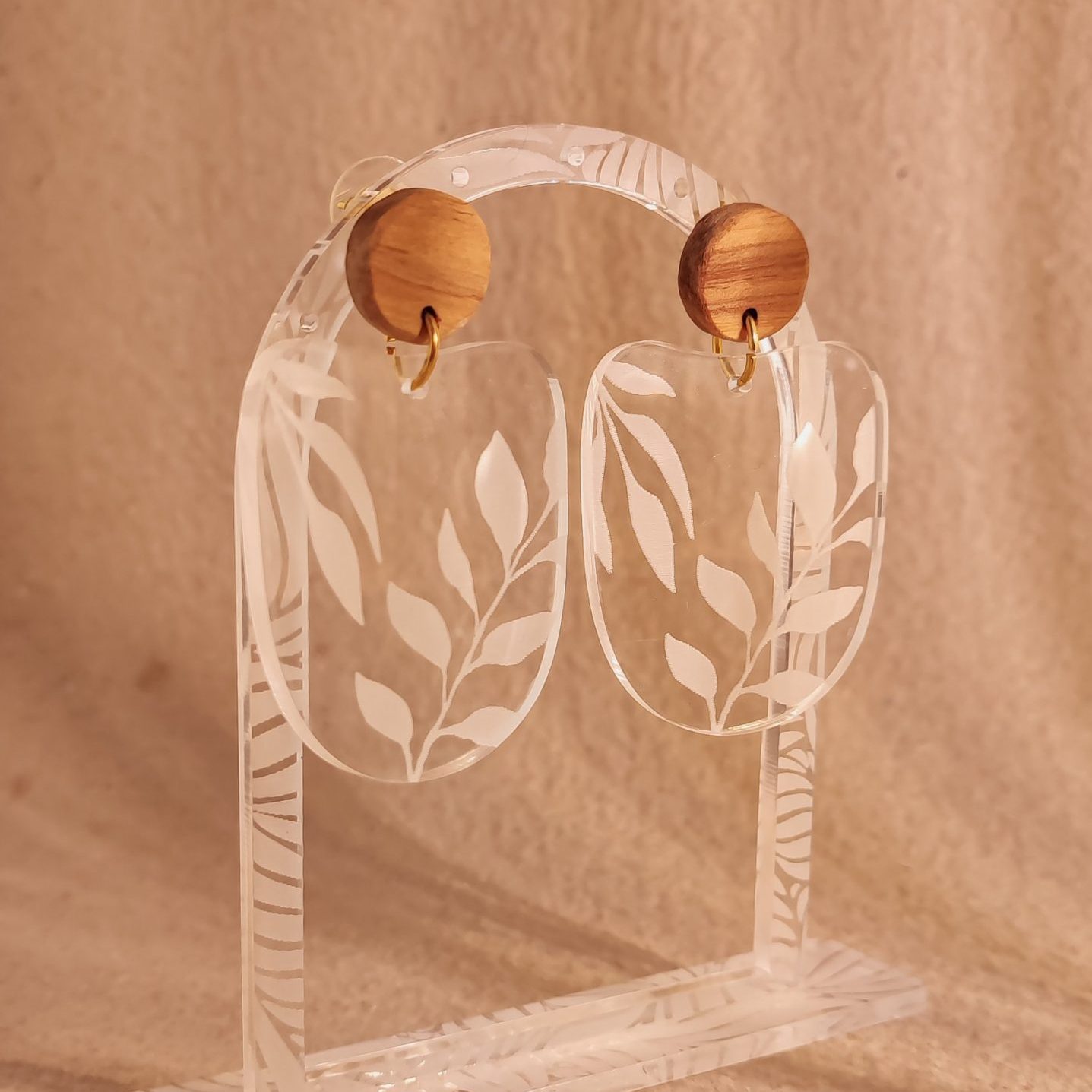 Orecchini in legno massello essenza Noce Bahia della collezione Botanic.